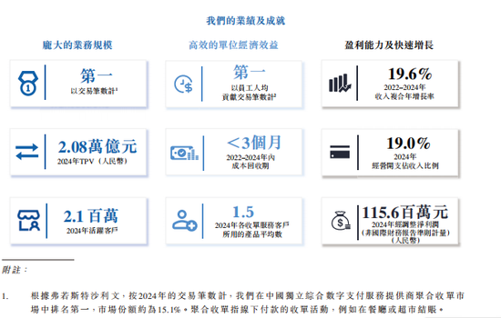 招股书清楚,2024年富友支付的职工东说念主均孝顺交游笔数约2810万笔,于中国详尽数字支付市集的主要参与者中排行第一。